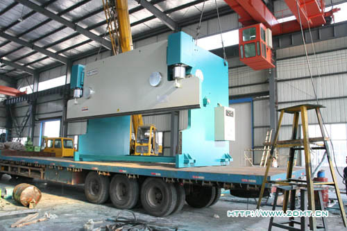 由于機(jī)器體積較大,高度超過3.5米,重量在50噸以上,所以采用了分體式運(yùn)輸,工作臺(tái)與機(jī)器主體分離開來(lái)。這種大型機(jī)床由于其體積與重量的關(guān)系,并不是很常見,需求量相對(duì)來(lái)講少點(diǎn),而對(duì)制造商的要求也相對(duì)比較高,其中無(wú)不體現(xiàn)中德產(chǎn)品在客戶心目中認(rèn)可度!