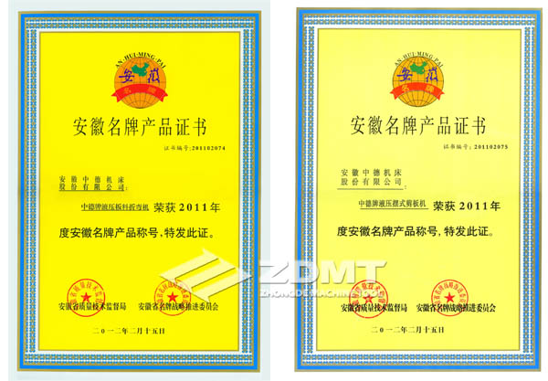 2012年3月22日,馬鞍山市召開了全市質(zhì)量技術(shù)監(jiān)督工作會(huì)議,會(huì)議對(duì)2011年獲得質(zhì)監(jiān)部門相關(guān)榮譽(yù)的企業(yè)與個(gè)人進(jìn)行了表彰,我公司中德牌液壓擺式剪板機(jī)和中德牌液壓板料折彎機(jī)兩個(gè)產(chǎn)品分別通過了2011年“安徽名牌”的復(fù)審。